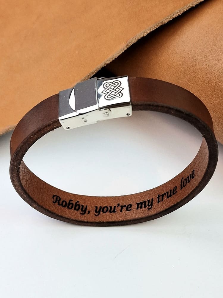 Ieškant valentino dienos dovanos vyrui atkreipkite dėmesį, jog vyriški papuošalai tampa vis populiaresni, tarp jų ir apyrankės. Odinės apyrankės su išgraviruotais zodiako ženklais, baltų simboliais, lietuvišku vyčiu ar tiesiog vardu yra tai, ko dažnai ieškoma tarp pačių vyrų. Visą tai įprasminti galite išgraviruodami ant odinių apyrankių ir savo brangius žodžius.